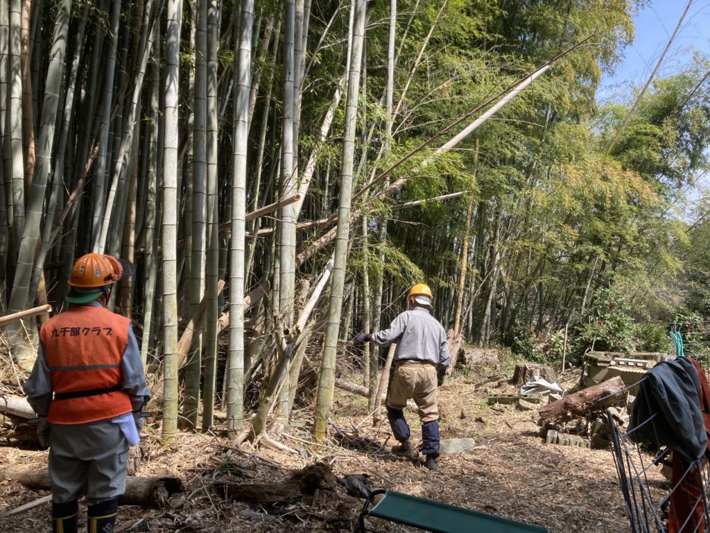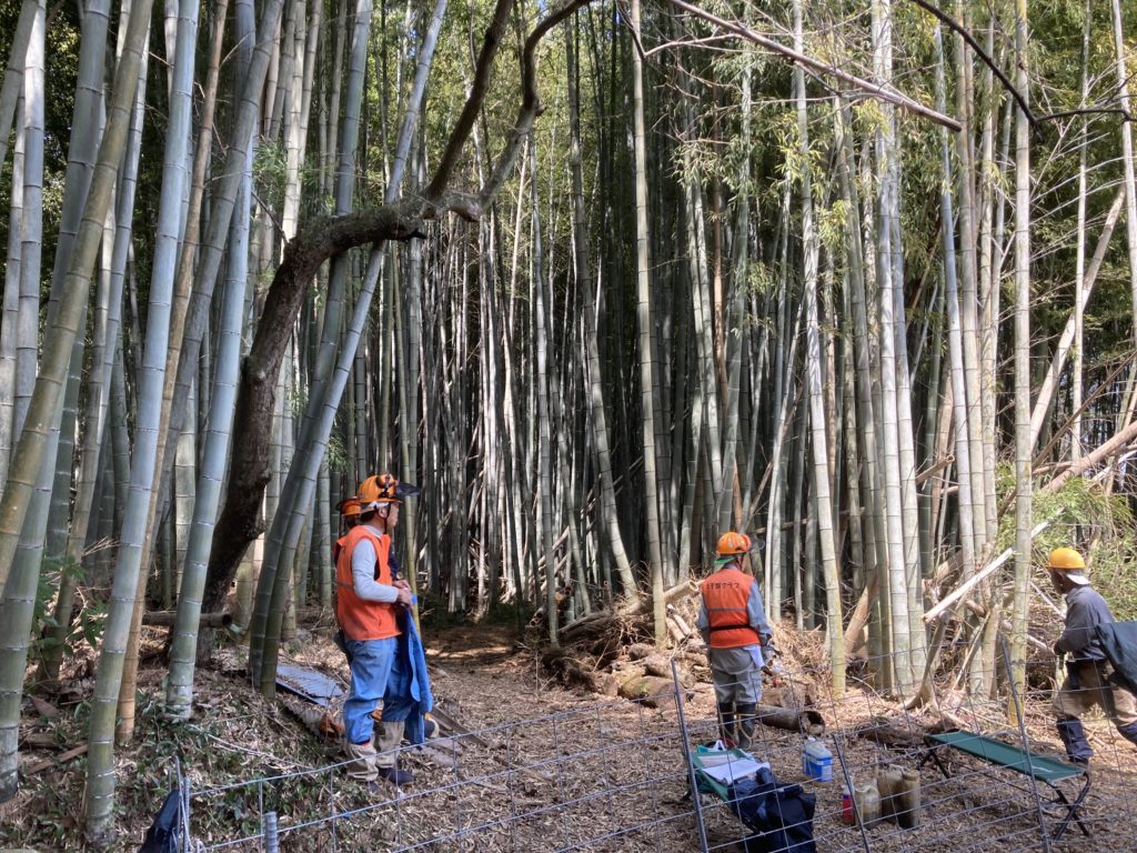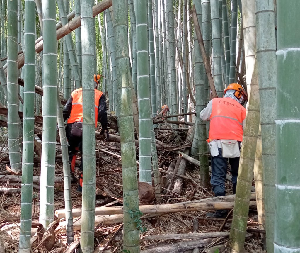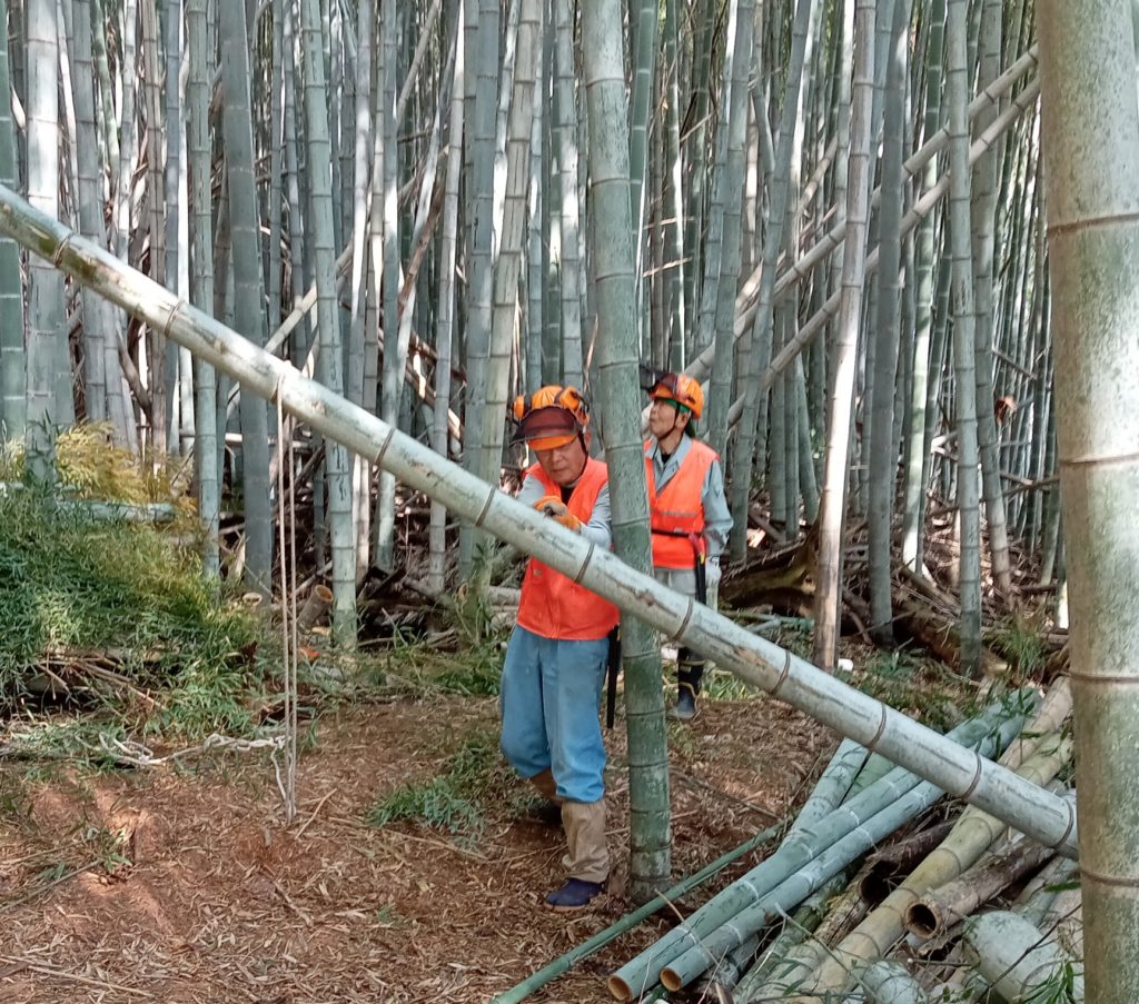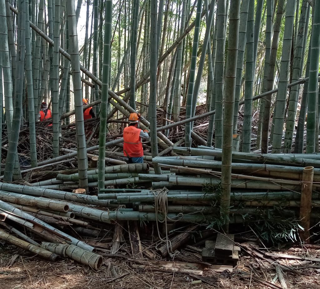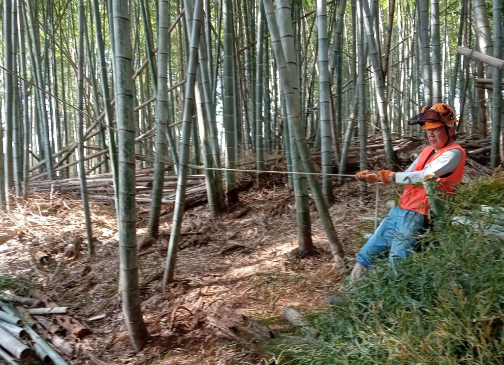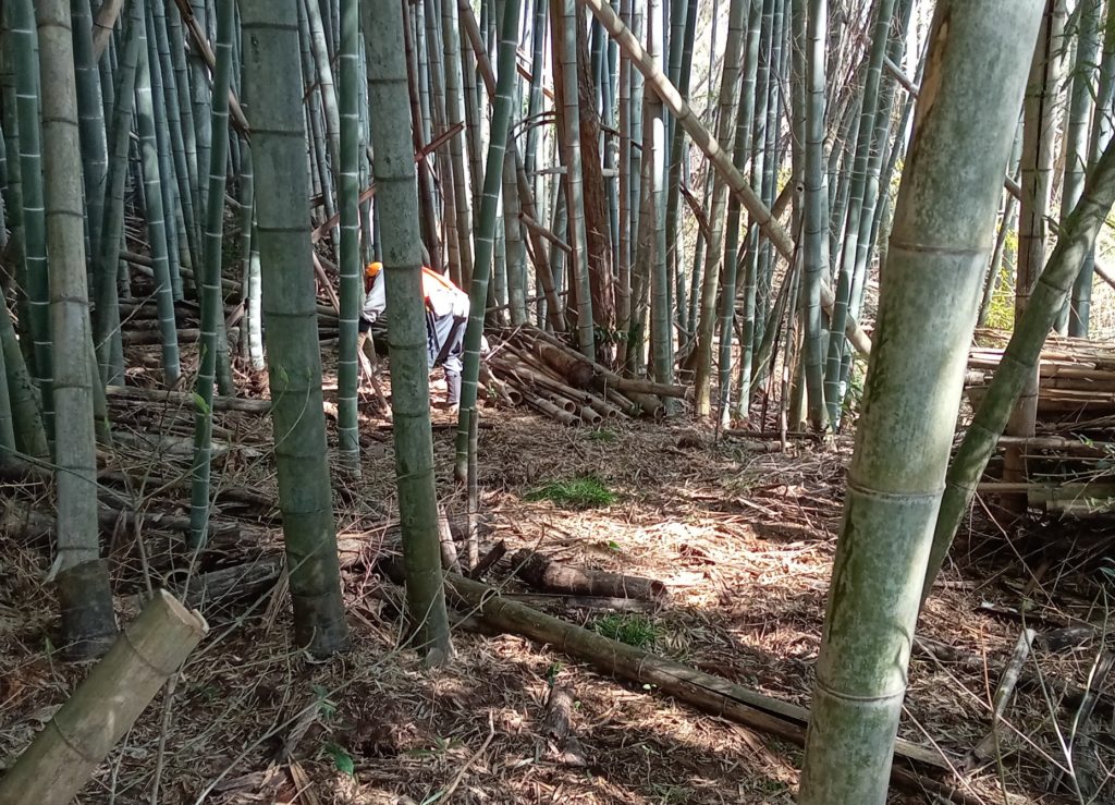 3月19日(日) 「江島」において 「筍掘り企画」の ための竹林整備 (孟宗竹伐り)を しました。 竹林伐採整備、県民参加の森林づくり X Facebook はてブ LINE コピー 2023.03.20 目次 江島町での整備竹林内の伐採の難しさ今日の参加メンバー 江島町での整備 西側の経路を啓開 西側の経路 南側(近くの建物に要注意) 南側(倒竹の処理にも時間が・・・) 竹林内の伐採の難しさ 間隙を見極め、倒す方向を決めての作業 倒す方向にロープで誘導 東側からの啓開作業です 東側の通路がほぼ確保できました 伐竹が他の竹に阻まれて手間取ります 東側と西側の組がようやく合流 竹林内がとても明るくなりました 今日の参加メンバー お疲れ様でした