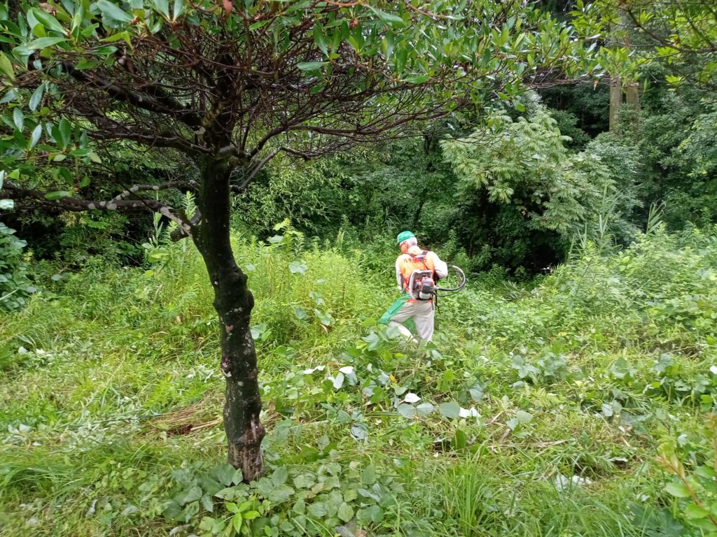 7月15日(土) 弥生が丘「ほんごう 大池」南側の土地 に植林したエリア の蔦、下草を払い 樹木の生長を促し ました。 森林・農地整備活用事業 X Facebook はてブ LINE コピー 2023.07.15 目次 樹木の生長を願いつつしばしの休憩 樹木の生長を願いつつ 草刈り機出動 あっという間に草が伸びていました 長柄刈払い鎌出動 ここだけの下草払いでも汗だくです しばしの休憩 このあと大粒の雨になりました 今日は、蒸し暑く、短い時間でも汗だくでした。早めの休憩で体調を整えていると、急に大粒の雨に襲われて・・・・。御参加の皆さん、お疲れ様でした。