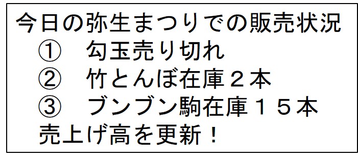 3月31日(日) 鳥栖市田代 公園での 「とす弥生 まつり」に 参加し「勾玉 の作成」 コーナー等 を担当しま した。 手作りおもちゃ作り X Facebook はてブ LINE コピー 2024.03.31 目次 会場での活動状況会場の状況会場の桜 会場での活動状況 設営準備中 千客万来? メニューも多数 昔懐かしい「輪ゴム銃」 「竹トンボだ!」の声も 会場の状況 何故か食べたくなる? 良い匂いも! 会場に多数の来場者! 会場の桜 桜は6~8分咲きでしょうか 可憐で美しい日本の桜ですね!