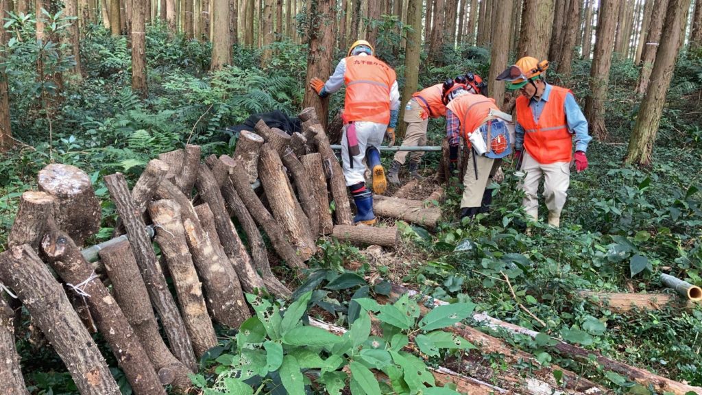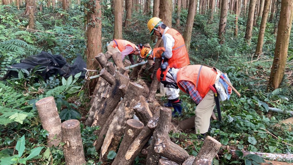 の準備のため「河内町転石」において「椎茸の