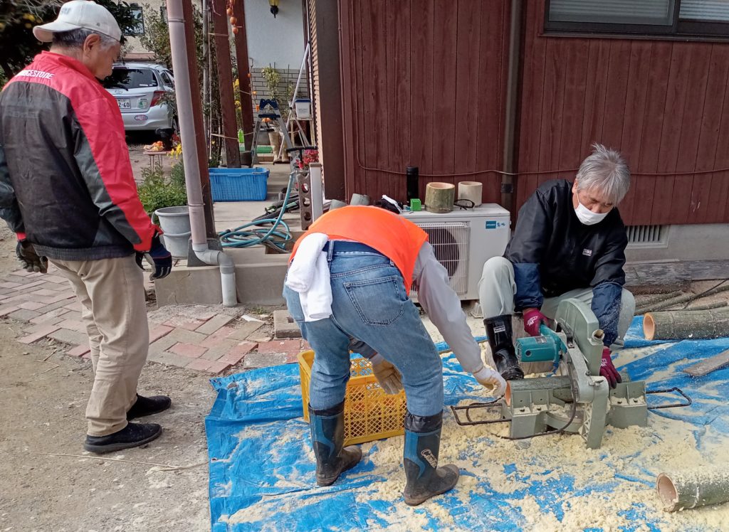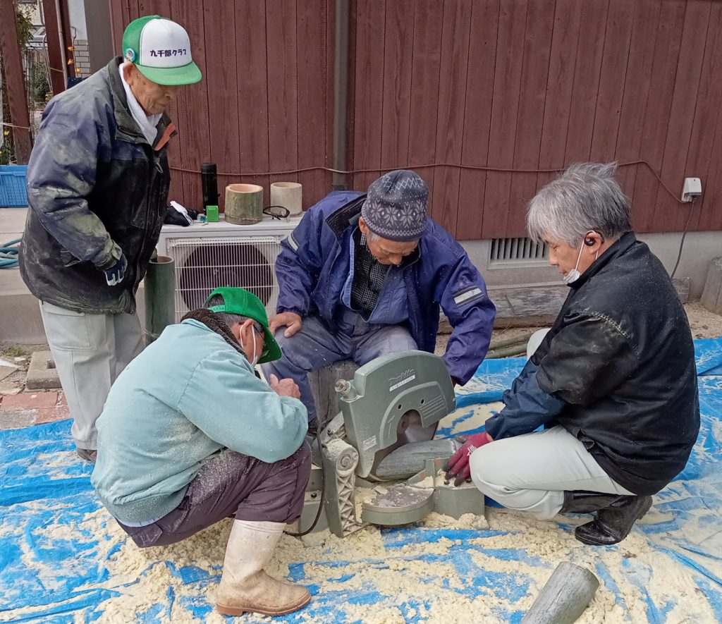 12月11日(水) 吉野ヶ里町において「ミニ門松作り」の材料を作成