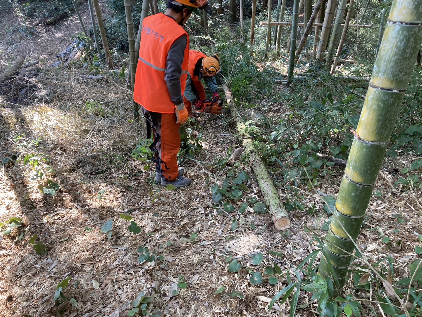 3月8日(土) 葛籠城において「間伐」を実施 地域環境保全、育林 X Facebook はてブ LINE コピー 2025.03.10 目次 「間伐」の様子休憩中に本日参加の皆さん 「間伐」の様子 作業のため、周辺の灌木等を伐採 いよいよ間伐開始 伐採した樹の枝払い 手頃な長さに裁断 休憩中に 「椎茸の菌打ち」した「ホダ木」の手入れ(収穫も間近?) 本日参加の皆さん お疲れ様でした。