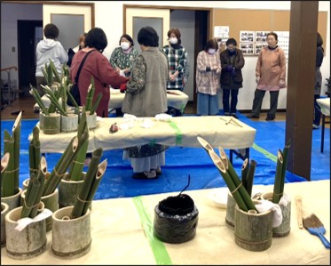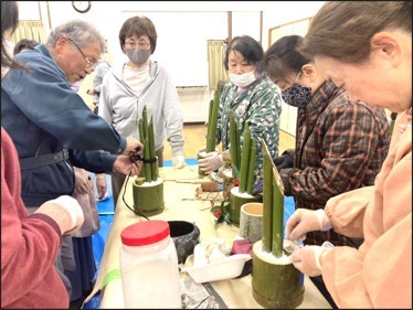 12月21日(日) 「高田町公民館」において『ミニ門松作り』をお手伝いしました。 地域作り X Facebook はてブ LINE コピー 2025.12.23 目次 事前準備中作成開始完成披露(きれいに仕上がりました) 事前準備中 作成開始 作成手順の説明 飾り紐の取付 完成披露(きれいに仕上がりました) 皆さんの笑顔が、会心の出来栄えを物語っています