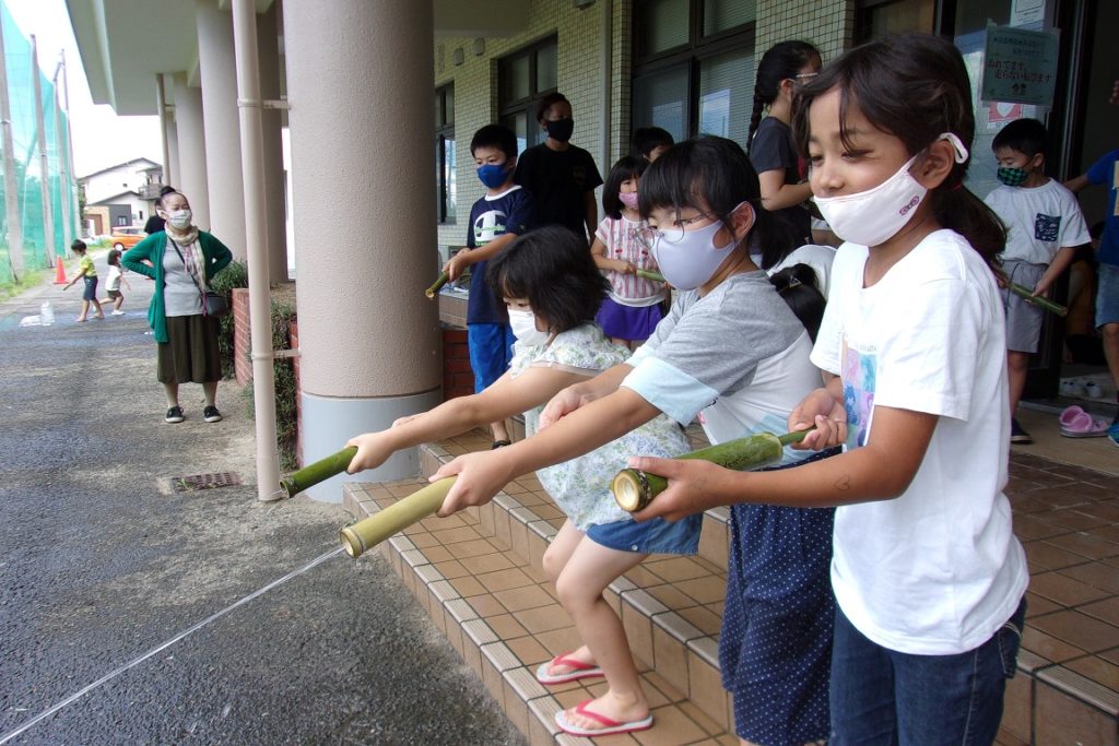 8月7日 旭まちづくり推進センターにおいて昔遊び「ヤジロベーづくり」と「水鉄砲づくり」を手伝いました。 手作りおもちゃ作りKODAK Digital Still Camera X Facebook はてブ LINE コピー 2021.08.30 ヤジロベーの作り方を保護者の方も一緒にお勉強です。 完成しました。この微妙なバランスがたまりませんね。さあ次は、いよいよ水鉄砲だ! いよいよ水の注入開始。 水鉄砲ができたよー! いよいよ試射開始だー! 的をめがけて、「やったー!」 「当たったよー!」 みんなが的をめがけて一斉に射撃。ちかづいて狙う子も。