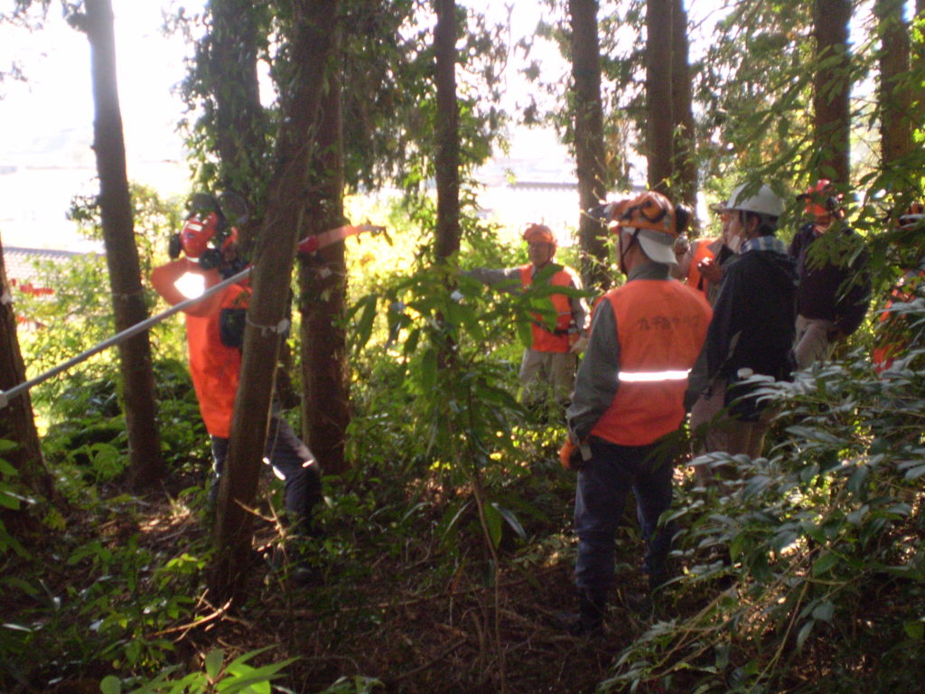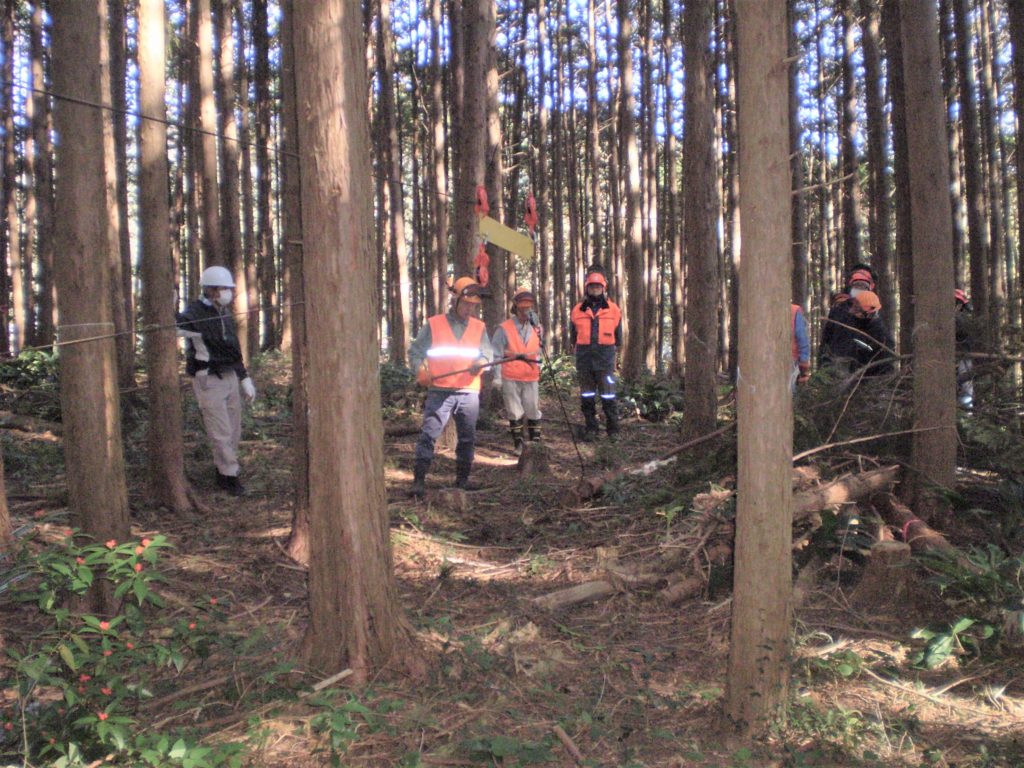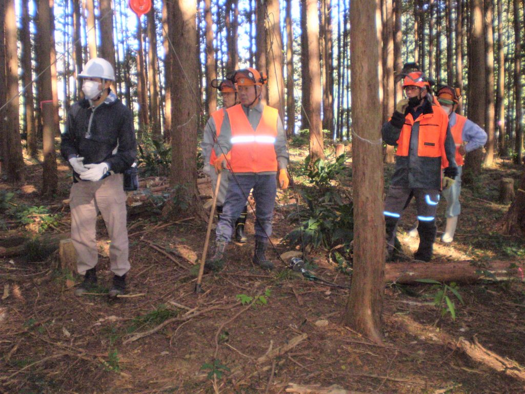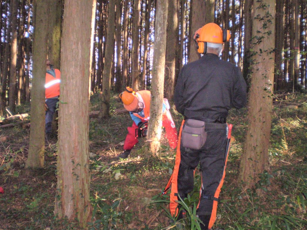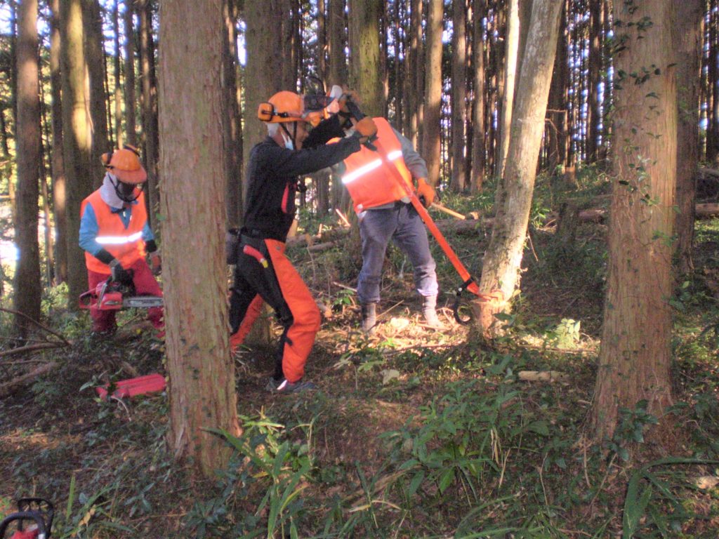 11月20日(土) さが緑の基金事業「森林保全作業の安全講習」に参加しました。 竹林伐採整備、県民参加の森林づくりOLYMPUS DIGITAL CAMERA X Facebook はてブ LINE コピー 2021.11.21 目次 講習(座学)講習(搬出作業)講習(枝打ち)午後から間伐作業 講習(座学) 本日の講習「搬出作業」「枝打ち」の座学開始 皆さん真剣な表情で聞き入っています。 講習(搬出作業) 段取り(準備)がとても重要!先柱の前のアンカーにスリングベルトを巻く 先柱にスリングベルトと滑車取付 元柱にスリングベルトと滑車取付 搬出準備完了!「ウィンチ 引け!」の合図 鳶口で「搬出木」を誘導中 講習(枝打ち) 講師による「枝打ち」の実技指導 「枝打ち」作業中 今年の4回にわたる「座学・実技」の講習終了!この講習を基に、更に安全を確保した作業に取り組めます。「お疲れ様でした。」 午後から間伐作業 #3回目「間伐作業」の講習成果を生かして 「手強い樹」も「なんのその」 15時頃に本日の予定をすべて安全に終了しました。