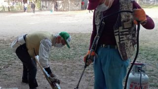 西側上空からの映像です。今日までの準備期間中に多くの方のご支援を頂きました。有り難うございました。一人でも多くの方にご覧いただきたいですね。九千部クラブで焼いた孟宗竹が林立しています。夜にライトアップされ、人々が幻想的な風景を楽しんでいます...